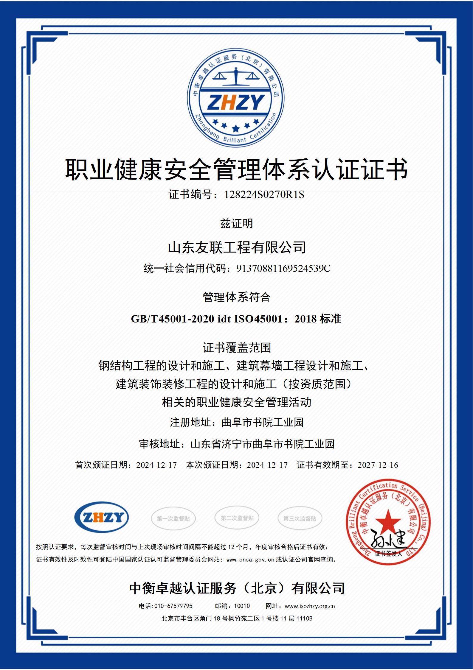 職業(yè)健康管理體系認(rèn)證證書(shū)